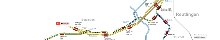 neuer Gleisplan: Reutlingen mit dem Straßenbahn-Teil der geplanten Regional-Stadtbahn Neckar-Alb.